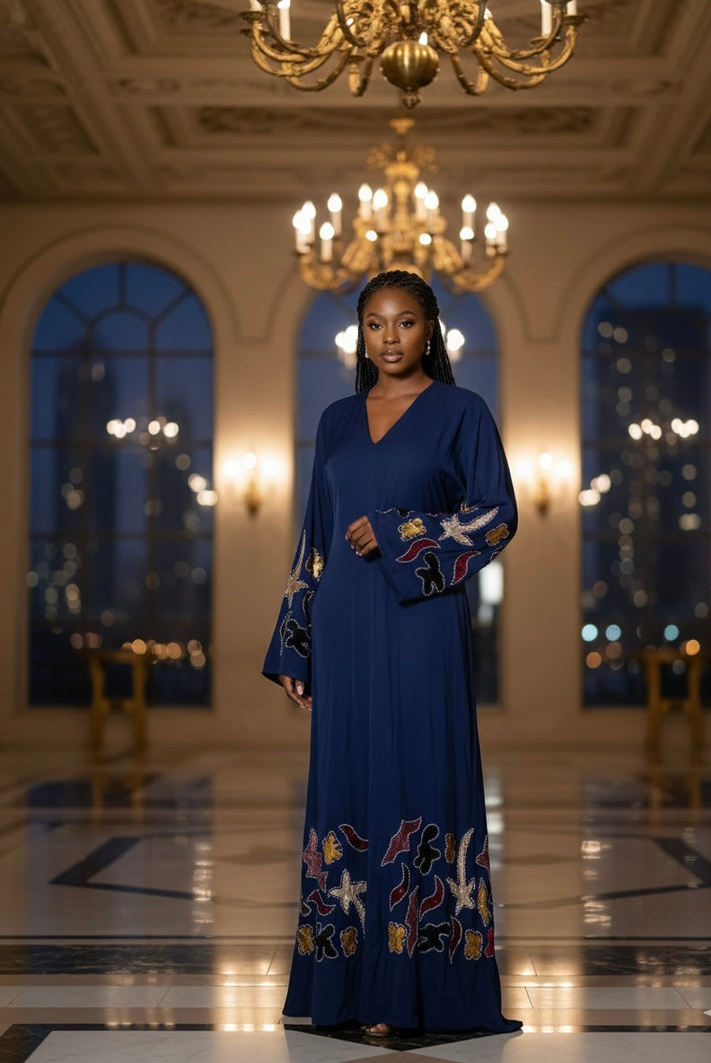 Laissez-vous séduire par la profondeur et la noblesse de notre robe "Aura". Conçue pour celles qui recherchent une élégance à la fois sobre et majestueuse, cette robe longue fluide est l'alliée parfaite de vos grandes occasions, cérémonies ou soirées habillées.